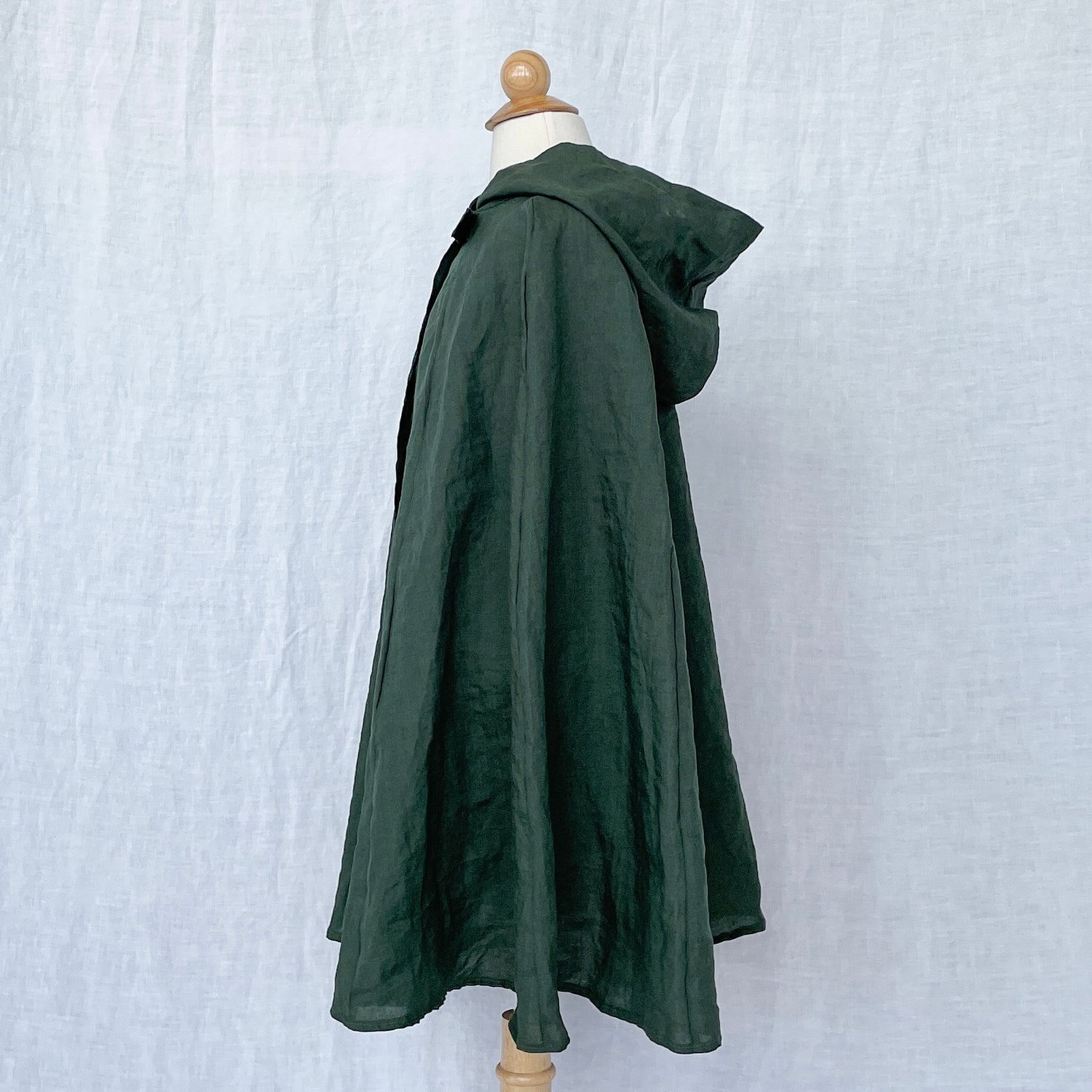 -Linen is a natural material. Our capes are not pre-washed, so will shrink slightly after first wash, but fit is generous to accommodate. Fabric will soften with wash and wear.