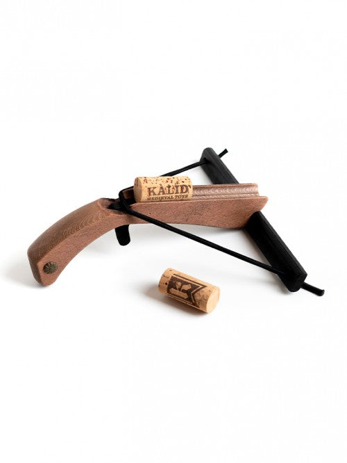 Mini crossbow made of beechwood with 2 cork bullets. Made in Spain.